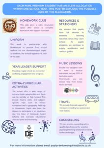 - Parent awareness of Pupil Premium availability and suggested interventions. Letter sent to all parents at the beginning of the academic year, highlighting school spending priorities and seeking parental suggestion for interventions for their daughter. High profile of students in receipt of Pupil Premium (minimal cost).